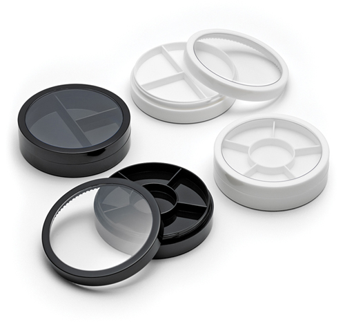 Ronkonkoma, NY, August 25, 2017 – Qosmedix recently introduced four new divider jars to their extensive line of stock packaging. These stylish and convenient jars are available with a 3-Way or 6-Way Divider. The 3-Way Divider Jars in Black (Part # 29570) and White (Part # 29571) have an inner capacity of 5 grams, 5 grams and 10 grams. The 6-Way Divider Jar in Black (Part # 29572) and White (Part # 29573) have an inner capacity of 3.5 grams per compartment. These polypropylene jars are perfect for packaging multiple creams or solid formulations such as corrector or solid lip gloss and lipstick. Please visit www.qosmedix.com to place an order or to learn more about these products.